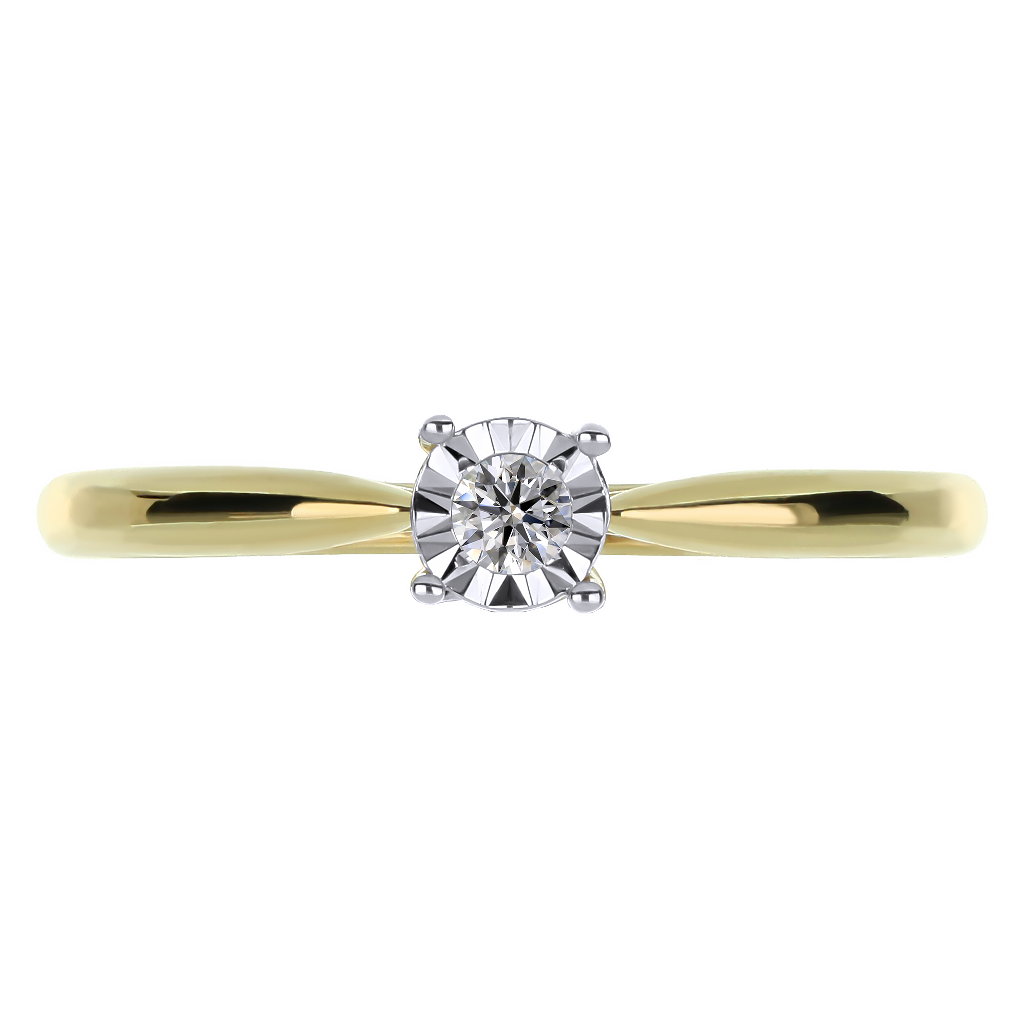 Anillo Solitario Ilusión con Centro 0.06 Quilates de Diamante en ORO AMARILLO de 14 kt