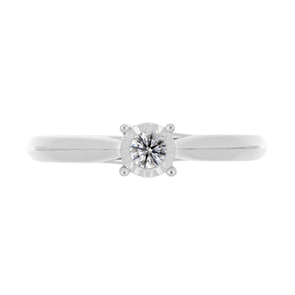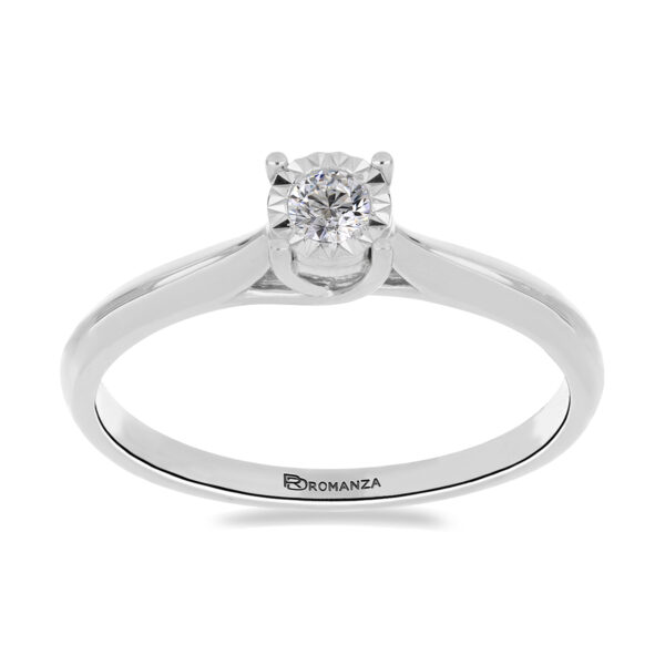 Anillo Solitario Ilusión con Centro 0.10 Quilates de Diamante en ORO BLANCO de 14 kt