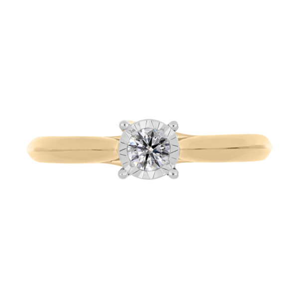 Anillo Solitario Ilusión con Centro 0.15 Quilates de Diamante en ORO AMARILLO de 14 kt
